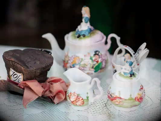 La pieza central de cuento de hadas de Alice’s Wonderland en el país de las maravillas